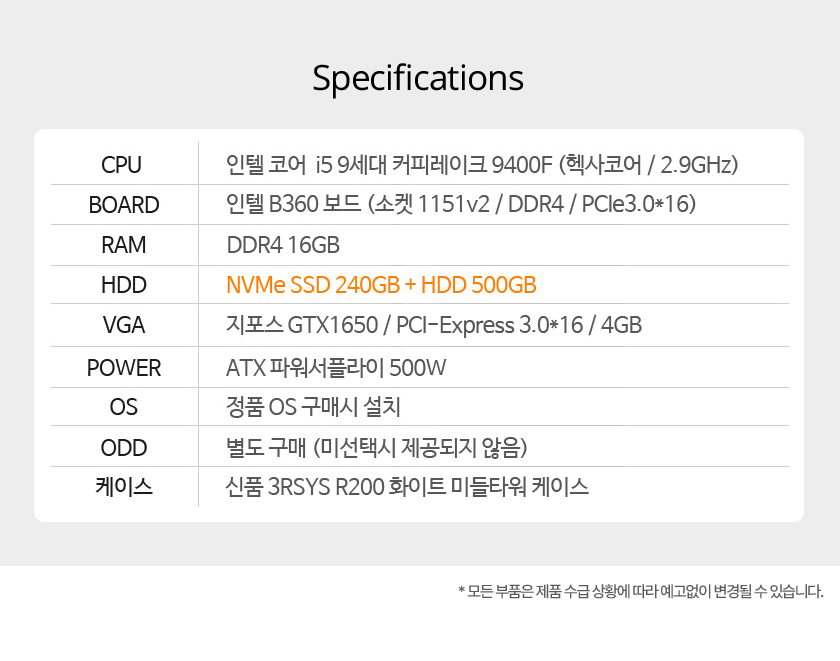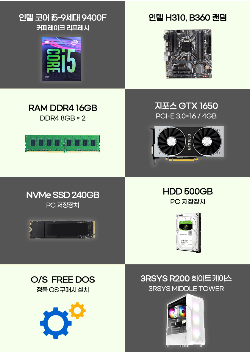 [Áß°í]ÀÎÅÚ ÄÚ¾î i5-9¼¼´ë Ä¿ÇÇ·¹ÀÌÅ© 9400F 16G ÁöÆ÷½ºGTX1650 SSD240GB 500G