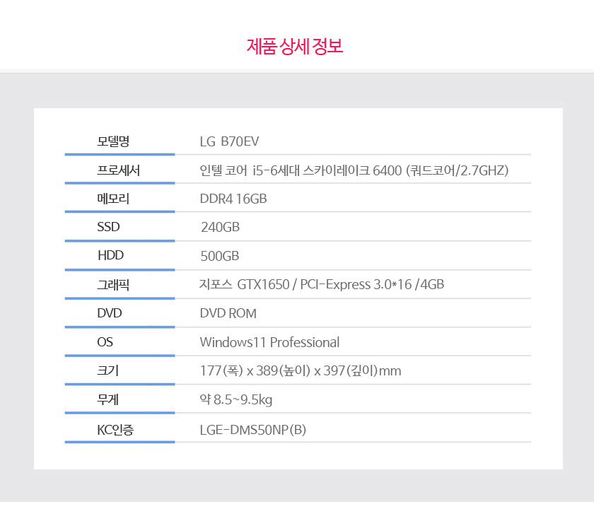 [Áß°í] LG µ¥½ºÅ©Å¾ B70EV i5 6¼¼´ë ½ºÄ«ÀÌ·¹ÀÌÅ© 6400 16G GTX1650 SSD240G 500GB