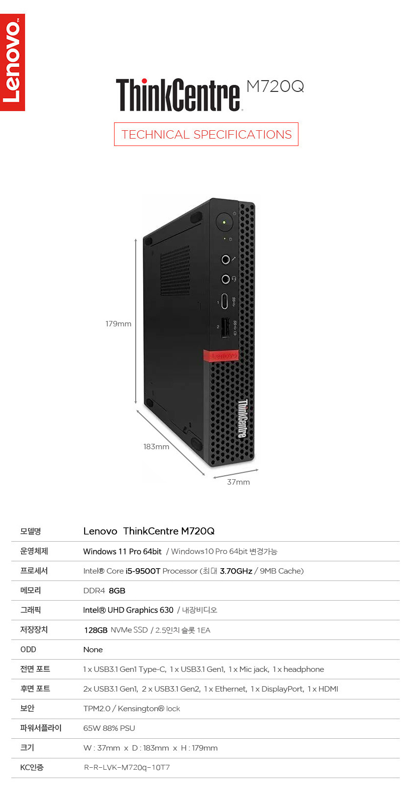 Áß°í ÄÄÇ»ÅÍ > ºê·£µåPC > [Áß°í] ·¹³ë¹ö ThinkCentre M720q Tiny ¹Ì´ÏPC i5 9¼¼´ë 9500T Ä¿ÇÇ·¹ÀÌÅ© 8G UHD630 NVMe SSD 128G