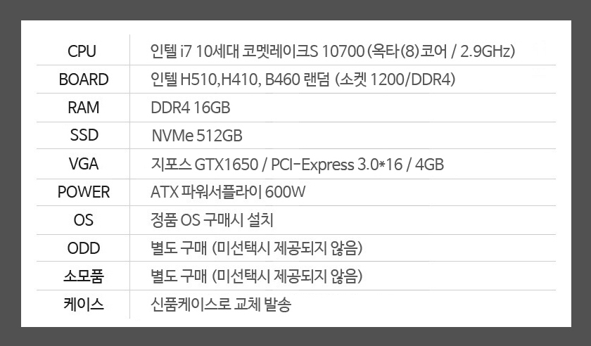 [Áß°í] ÀÎÅÚ ÄÚ¾î i7-10¼¼´ë Äڸ䷹ÀÌÅ©S 10700 16G ÁöÆ÷½º GTX1650 NVMe 512GB
