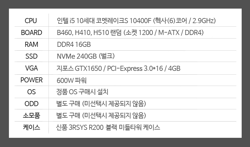 [Áß°í] ÀÎÅÚ ÄÚ¾î i5-10¼¼´ë Äڸ䷹ÀÌÅ©S 10400F 16G ÁöÆ÷½ºGTX1650 NVMe SSD240GB