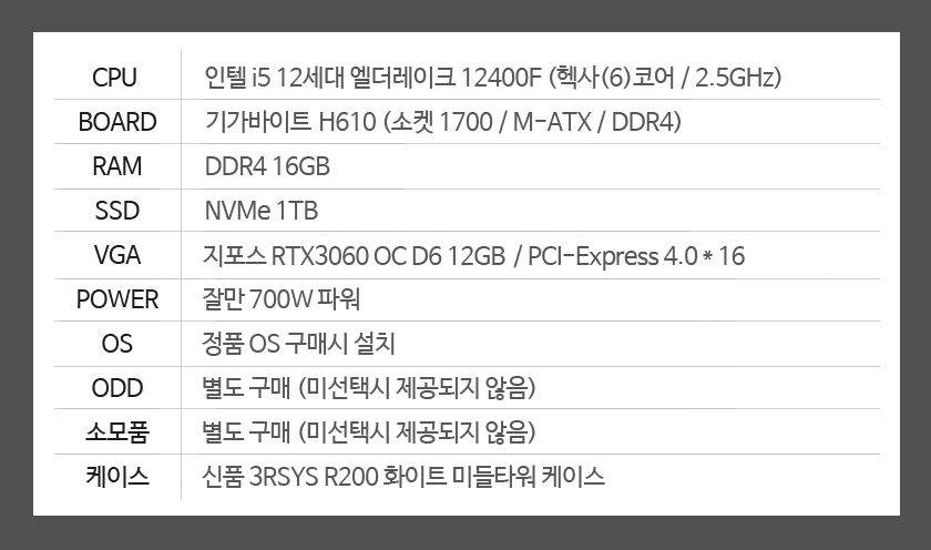 [Áß°í] ÀÎÅÚ ÄÚ¾î i5-12¼¼´ë ¿¤´õ·¹ÀÌÅ© 12400F 16G ÁöÆ÷½ºRTX3060 NVMe SSD1TB