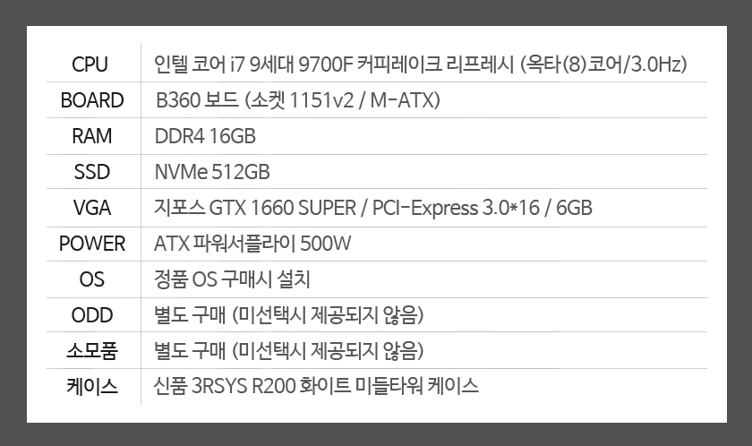 [Áß°í] ÀÎÅÚ ÄÚ¾î i7-9¼¼´ë Ä¿ÇÇ·¹ÀÌÅ© ¸®ÇÁ·¹½Ã 9700F 16G ÁöÆ÷½º GTX1660Super NVMe 512GB