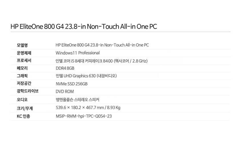 Áß°í ÄÄÇ»ÅÍ > ºê·£µåPC > [Áß°í] HP EliteOne 800 G4 ¿ÃÀοøPC i5 8¼¼´ë Ä¿ÇÇ·¹ÀÌÅ© 8400 8G NVMe SSD256G ¹«¼±Å°º¸µå/¸¶¿ì½º/·£Ä«µå ÁõÁ¤