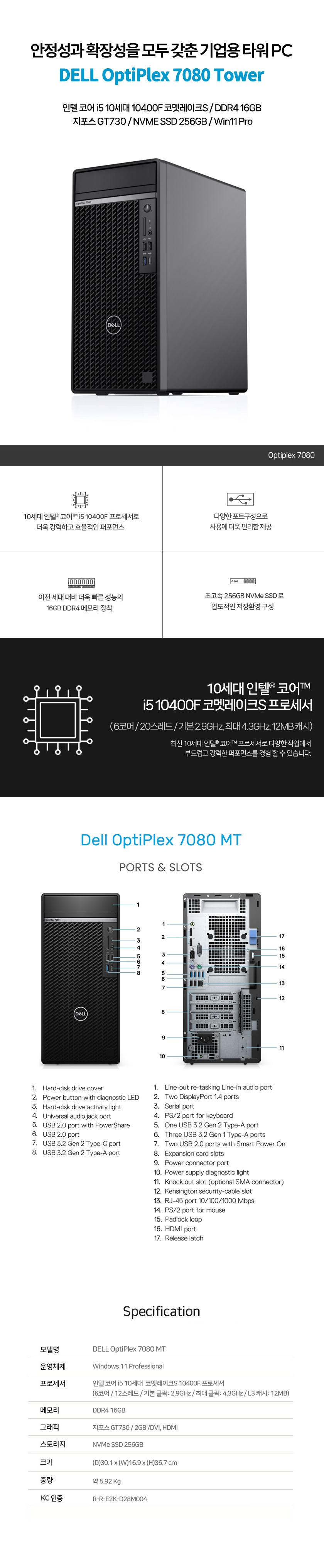 ¿ëµµº° Áß°íPC > »ç¹«¿ë/°¡Á¤¿ë > [Áß°í] DELL ¿ÉƼÇ÷º½º 7080 MT i5 10¼¼´ë Äڸ䷹ÀÌÅ©S 10400F 16G ÁöÆ÷½ºGT730 NVMe SSD256GB