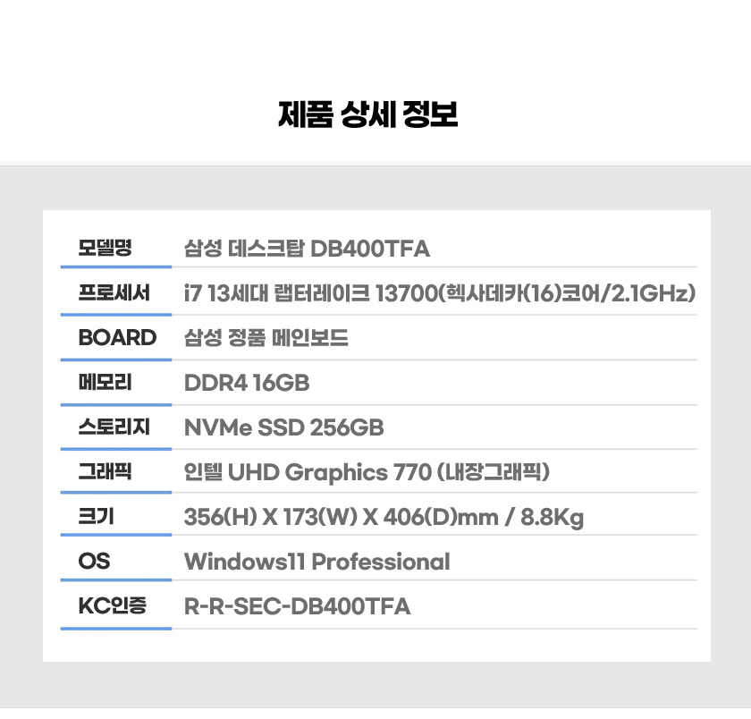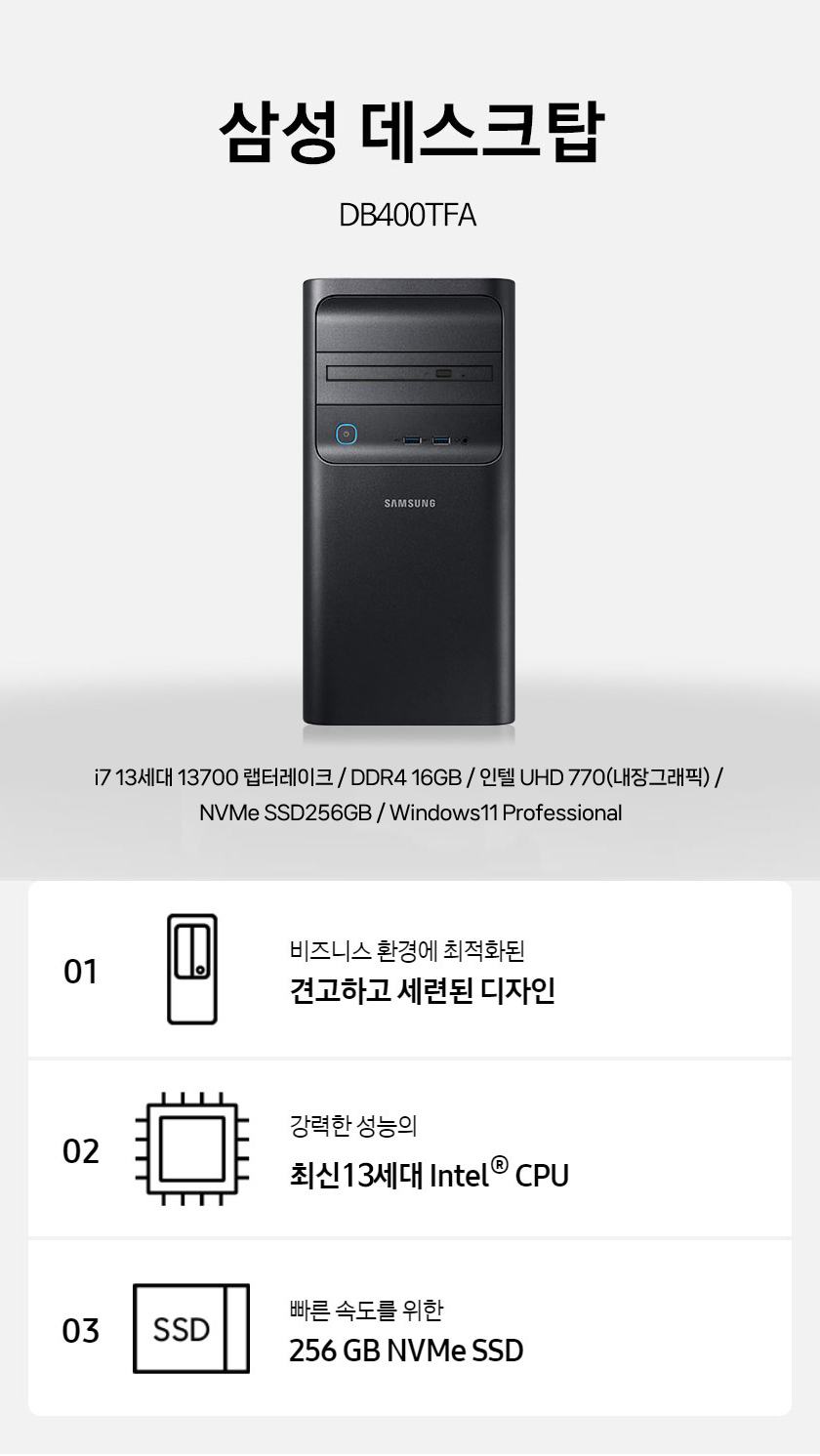 [Áß°í] »ï¼ºµ¥½ºÅ©Å¾ »ï¼º DB400TFA i7 13¼¼´ë ·¦ÅÍ·¹ÀÌÅ© 13700 16G ÀÎÅÚUHD770 NVMe SSD256GB