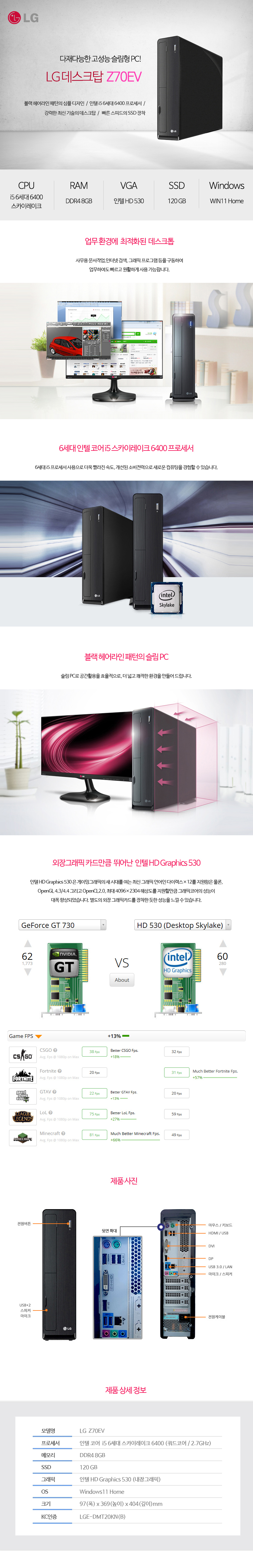 Áß°í ÄÄÇ»ÅÍ > ºê·£µåPC > [Áß°í] LGµ¥½ºÅ©Å¾ LG ½½¸² Z70EV i5 6¼¼´ë ½ºÄ«ÀÌ·¹ÀÌÅ© 6400 8G SSD120G