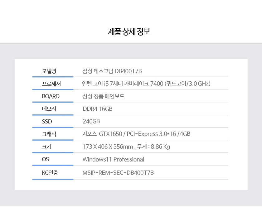 Áß°í ÄÄÇ»ÅÍ > ºê·£µåPC > [Áß°í] »ï¼ºµ¥½ºÅ©Å¾ »ï¼º DB400T7B i5 7¼¼´ë Ä«ºñ·¹ÀÌÅ© 7400 16G GTX1650 SSD240G